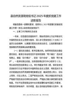 县自然资源局党组书记2025年度抓党建工作述职报告.docx