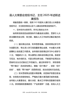 县人大常委会党组书记,主任2025年述职述廉报告.docx