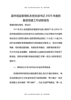 县市场监管局机关党支部书记2025年度抓基层党建工作述职报告.docx