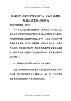 县政府办公室机关党支部书记2025年度抓基层党建工作述职报告.docx