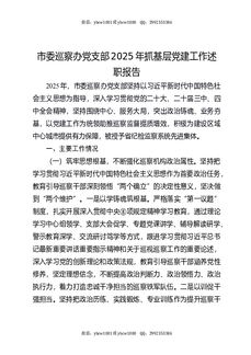 市委巡察办党支部2025年抓基层党建工作述职报告.docx