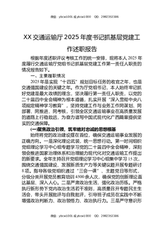 XX交通运输厅2025年度书记抓基层党建工作述职报告.docx