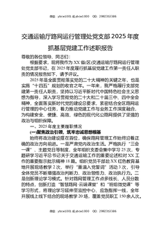 交通运输厅路网运行管理处党支部2025年度抓基层党建工作述职报告.docx