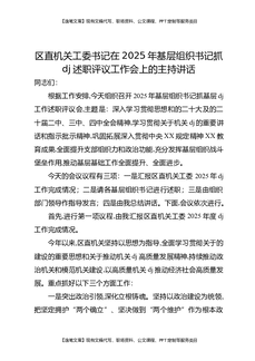 区直机关工委书记在2025年基层党组织书记抓党建述职评议工作会上的主持讲话.docx