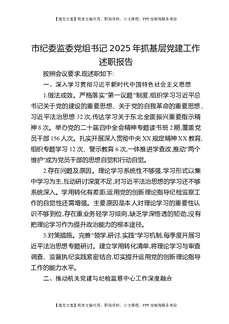 市纪委监委党组书记2025年抓基层党建工作述职报告.docx