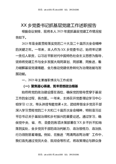 XX乡党委书记抓基层党建工作述职报告.docx