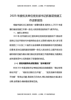 2025年度机关单位党支部书记抓基层党建工作述职报告.docx