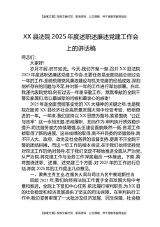 XX县法院2025年度述职述廉述党建工作会上的讲话稿.docx
