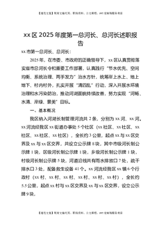 XX区2025年度第一总河长、总河长述职报告.docx