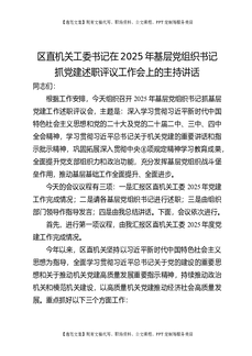 区直机关工委书记在基层党组织书记抓党建述职评议工作会上的主持讲话.docx