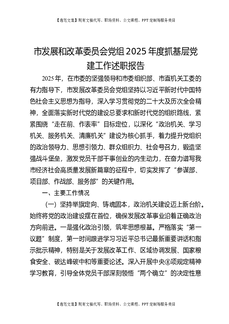 市发展和改革委员会党组2025年度抓基层党建工作述职报告.docx