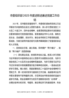 市委组织部2025年度述职述廉述党建工作总结.docx