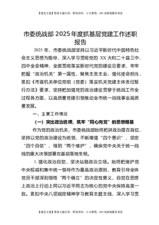 市委统战部2025年度抓基层党建工作述职报告.docx