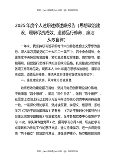 2025年度个人述职述德述廉报告(思想政治建设、履职尽责成效、道德品行修养、廉洁从政自律).docx