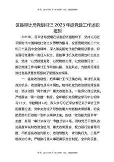 区县审计局党组书记2025年抓党建工作述职报告.docx