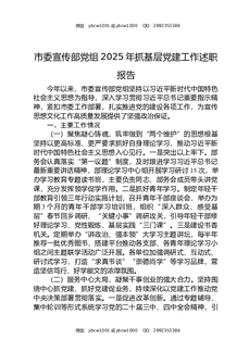 市委宣传部党组2025年抓基层党建工作述职报告.docx