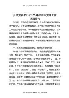 乡镇党委书记2025年抓基层党建工作述职报告.docx