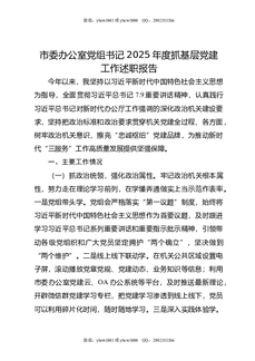 市委办公室党组书记2025年度抓基层党建工作述职报告.doc