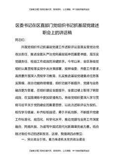 区委书记在区直部门党组织书记抓基层党建述职会上的讲话稿.docx