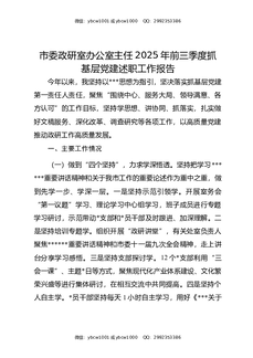 市委政研室办公室主任2025年前三季度抓基层党建述职工作报告.docx