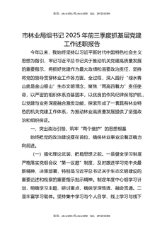 市林业局组书记2025年前三季度抓基层党建工作述职报告.docx