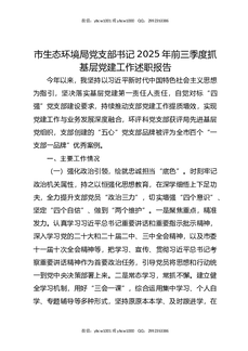 市生态环境局党支部书记2025年前三季度抓基层党建工作述职报告.docx