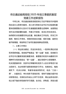 市交通运输局党组2025年前三季度抓基层党建工作述职报告.docx