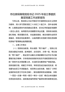 市住房保障局党组书记2025年前三季度抓基层党建工作述职报告.docx