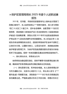 X保护区管理局局长2025年度个人述职述廉报告.docx