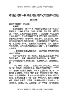 市税务局第一税务分局副局长试用期满转正述职报告.docx