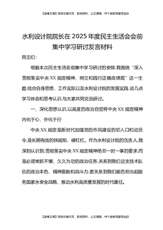 水利设计院院长在2025年度民主生活会会前集中学习研讨发言材料.docx