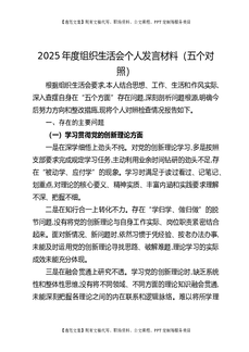 2025年度组织生活会个人发言材料(五个对照).docx