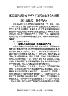 区委组织部部长2025年度民主生活会对照检查发言提纲(五个带头).docx