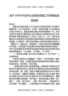 关于2026年全市公安系统党建工作思路的发言提纲.docx