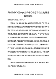 局长在总体国家安全观中心组学习会上的研讨发言材料.docx