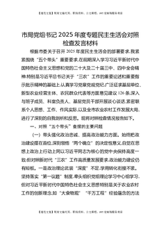 市局党组书记2025年度专题民主生活会对照检查发言材料.docx