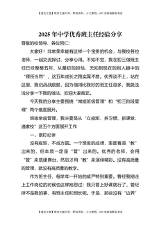 2025年秋季班主任经验分享稿 :心守一抹暖阳,静待一树花开