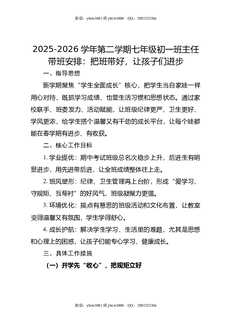 2025-2026学年第二学期七年级初一班主任带班安排:把班带好,让孩子们进步.doc