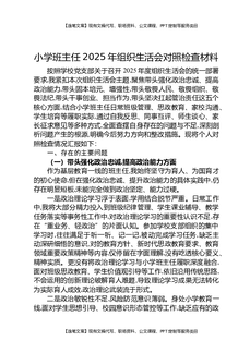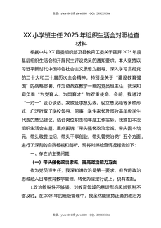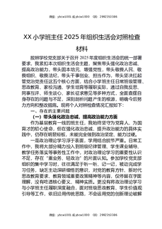 XX小学班主任2025年组织生活会对照检查材料.docx