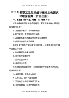 2026年教职工党纪党规与廉洁从教测试试题含答案(班主任版).docx