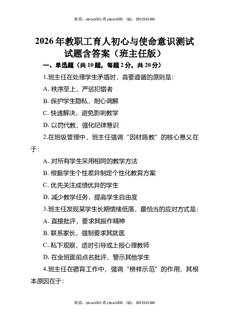 2026年教职工育人初心与使命意识测试试题含答案(班主任版).docx