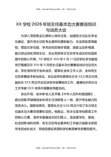 XX学校2026年班主任基本功大赛赛前培训与动员大会.docx