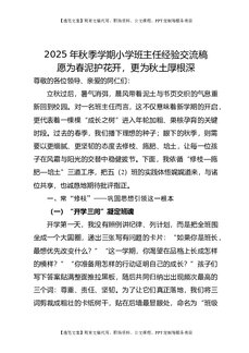 2025年秋季第一学期小学班主任经验交流稿:愿为春泥护花开,更为秋土厚根深.docx