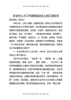 在全市人才工作调研座谈会上的汇报发言.docx
