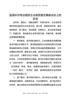 副县长在物业服务企业高质量发展座谈会上的发言.doc