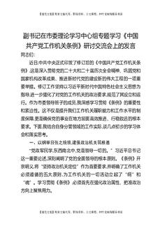 副书记在市委理论学习中心组专题学习《中国共产党工作机关条例》研讨交流会上的发言.docx