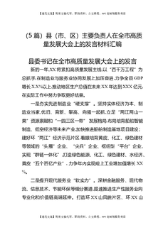 (5篇)县(市、区)主要负责人在全市高质量发展大会上的发言材料汇编.docx