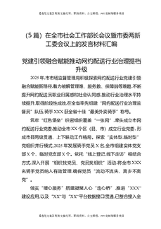 (5篇)在全市社会工作部长会议暨市委两新工委会议上的发言材料汇编.docx