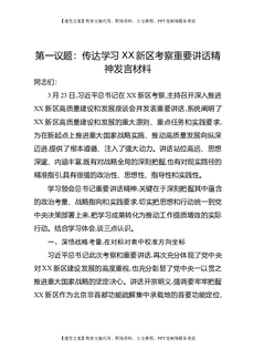 第一议题:传达学习XX新区考察重要讲话精神发言材料.docx