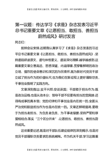 第一议题:传达学习《求是》杂志发表习近平总书记重要文章《让愿担当、敢担当、善担当蔚然成风》研讨发言.docx